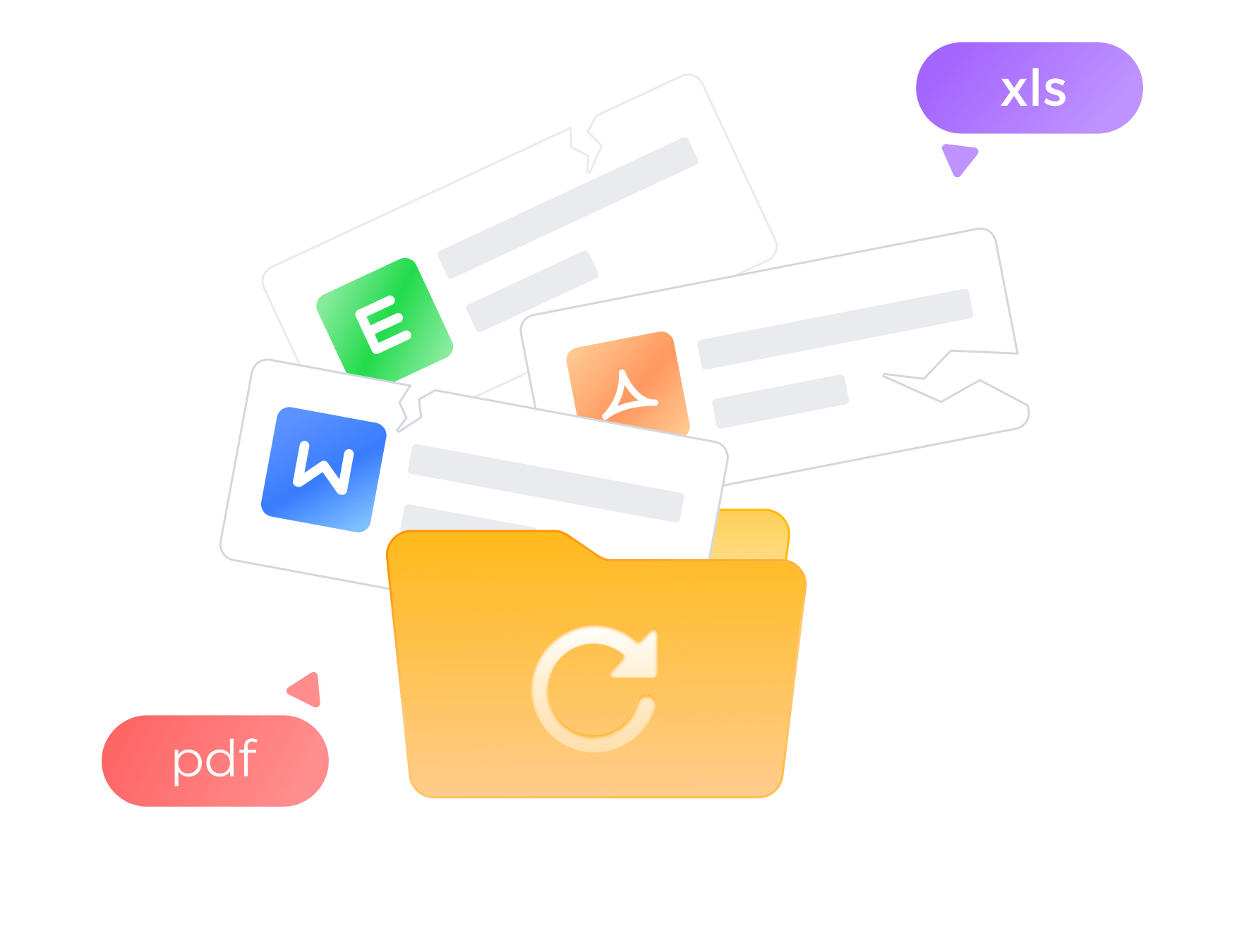 Recover and repair broken Word, Excel, PDF, and other documents with accuracy.